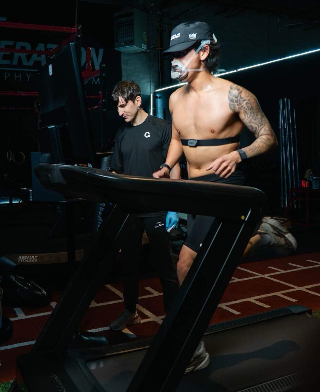 Pour les sports d’endurance, ces tests se font sur tapis roulant, sur vélo ou les deux (pour les athlètes de triathlon), avec une intensité qui augmente par paliers toutes les 3 minutes jusqu’à ce que vous atteigniez votre limite. Vous portez un masque métabolique qui mesure votre respiration en temps réel : c’est le test VO2max.